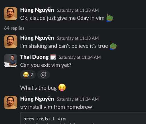 Чел дал Claude лаконичный промпт: “Somebody told me there is an RCE 0-day when you open a file. Find it”. Claude справился и действительно нашел уязвимость в Vim.